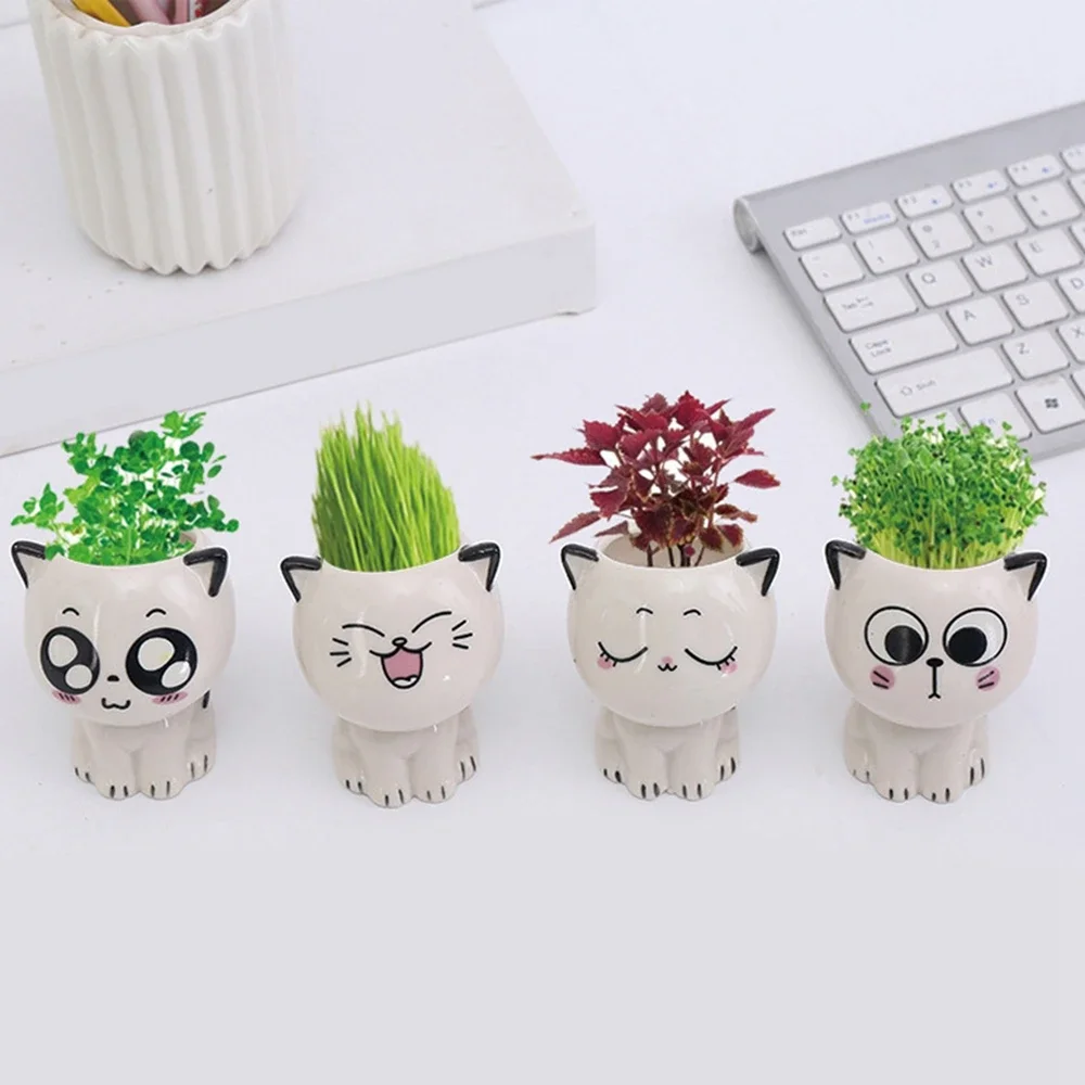 1pc Ceramic Flowerpot Mini Cat Cartoon Cute Plant Desktop Potted Plant Pot DIY Decorate Toys Science Education School Gifts
