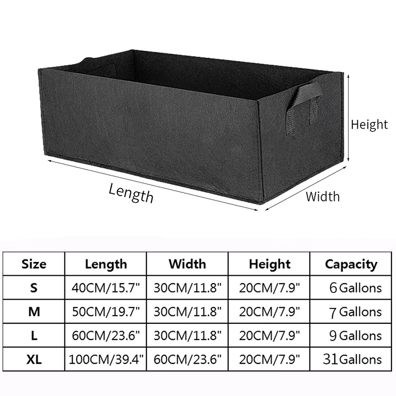 Rectangle Felt Grow Bag Fabric Planting Nursery Pot Gardening Flower Pot with Handle Garden Planting Container for Vegetable